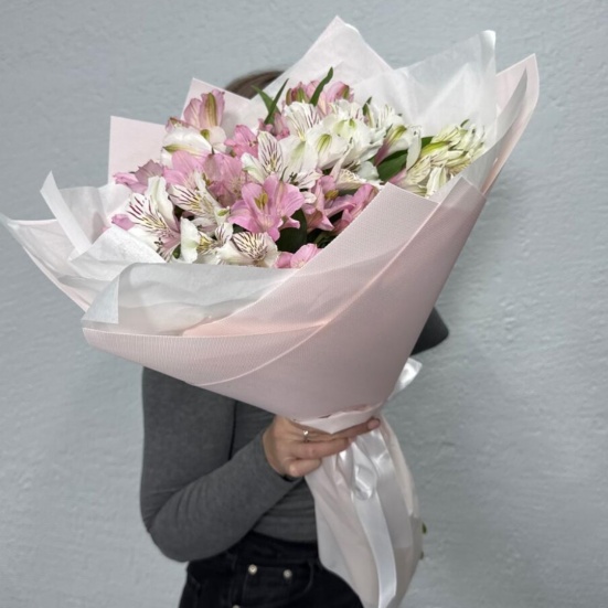 Букет из микс альстромерий белых и розовых